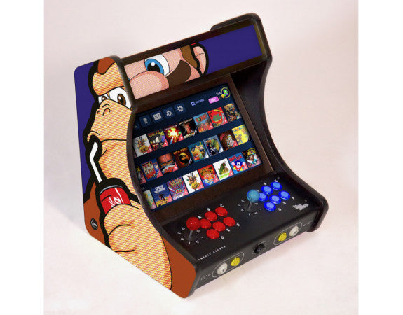 Le design de cette Borne d’arcade Bartop Cola Kong allie l’univers de Mario à celui de Donkey Kong, cela parlera fortement aussi bien aux aficionados qu’à une clientèle plus jeune.