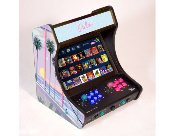 Avec cette borne d’Arcade Bartop Miami Palm, les amateurs de Miami vice ainsi que de la city pop japonaise seront ravis ! En effet, les amateurs de design rétro des années 80 ne resteront pas de marbre.
