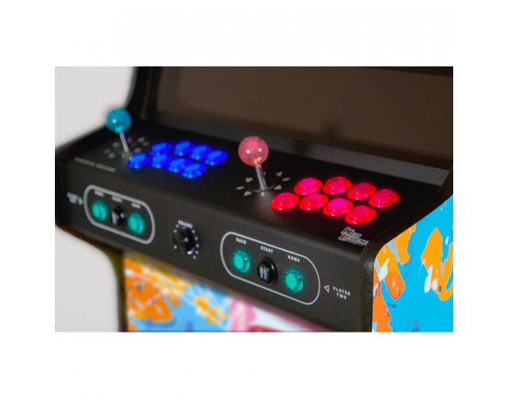 Vos clients pourront profiter de cette Borne d’Arcade Spray Fighter Monnayeur aussi bien seuls qu’en équipe grâce aux manettes et boutons japonais Roses Vs Bleus. Ces derniers sont équipés de LEDS pour égayer un peu ce design très travaillé pour un superbe look rétro futuriste.